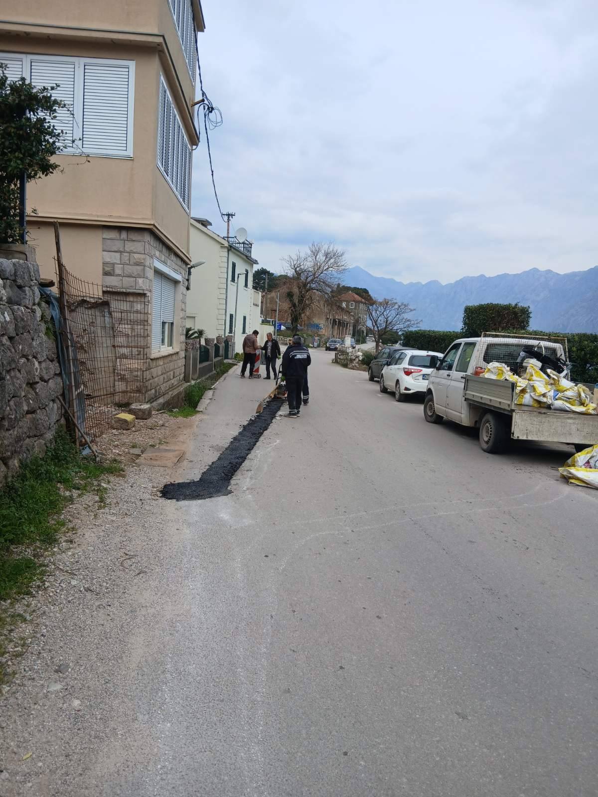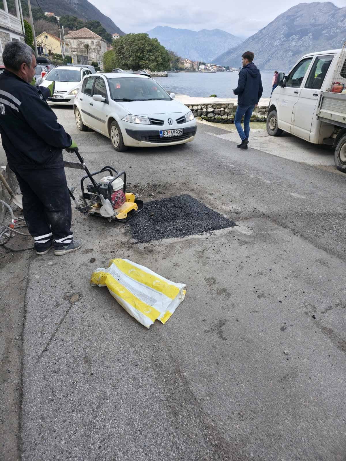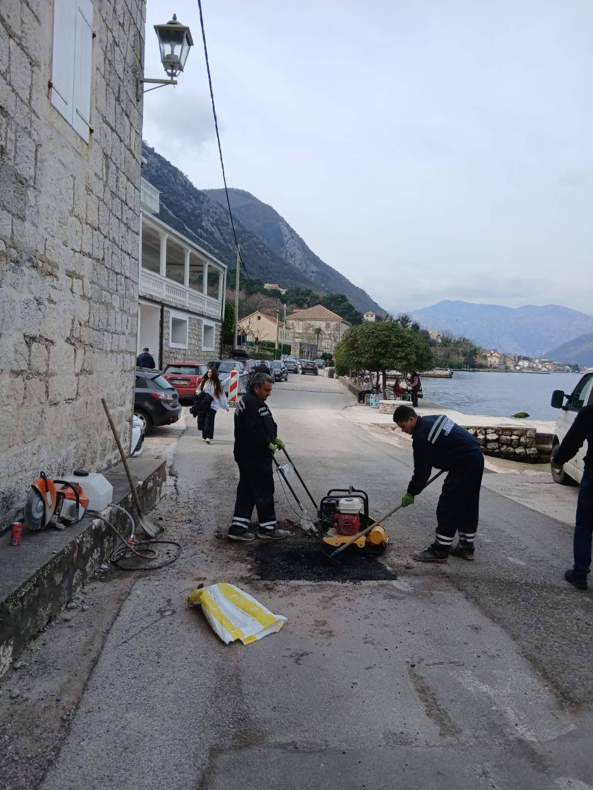 Danas su radnici Službe za uređenje i održavanje nastavili sa sanacijom udarnih rupa masom hladnog asfalta, na dionici puta od KBC Kotor do Prčanja.