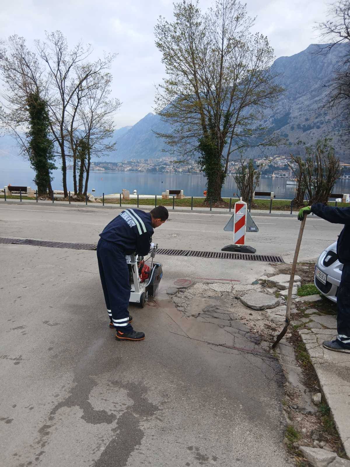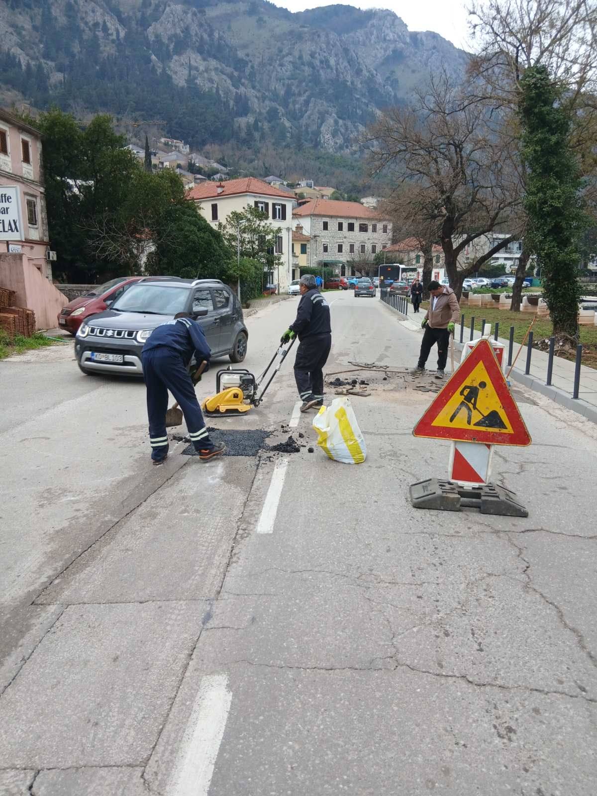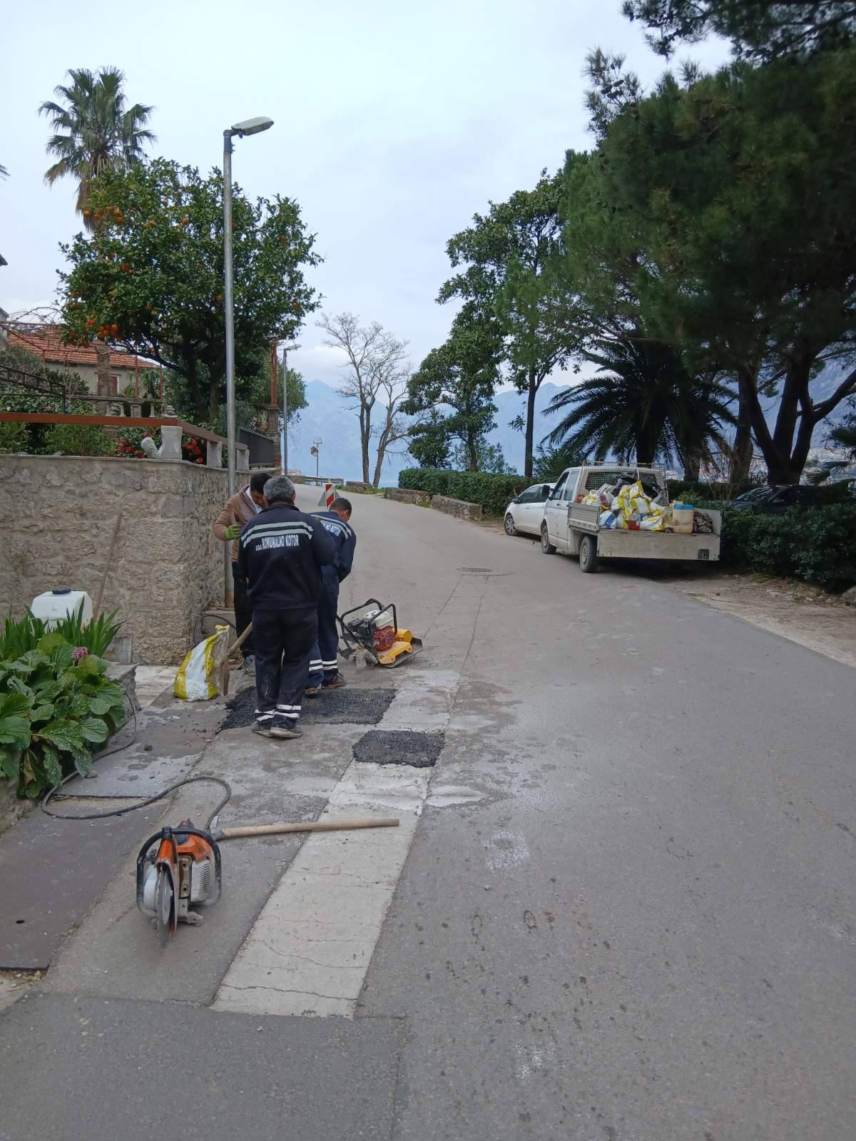 Danas su radnici Službe za uređenje i održavanje nastavili sa sanacijom udarnih rupa masom hladnog asfalta, na dionici puta od KBC Kotor do Prčanja.